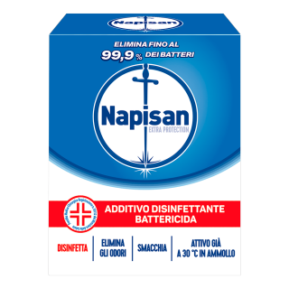 ISTRUZIONI D’USO PER L’AZIONE DISINFETTANTE.,In Lavatrice: aggiungere 60g di prodotto al normale detersivo direttamente nella vaschetta (40° C). ,A mano: scogliere 60 g di prodotto a 4 L di acqua tiepida (30° C). Lasciare agire per un’ora. Dopo l’ammollo lavare come d’abitudine e risciacquare abbondantemente. ,PER UN CORRETTO SMALTIMENTO DELLE CONFEZIONI: Confezione: PAP 22/Raccolta Carta. Verifica le disposizione del tuo Comune ,Napisan Extra Protection è un Presidio Medico Chirurgico. Leggere attentamente le avvertenze e le istruzioni d’uso. Autorizzazione del 10/02/2022.